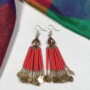 Crystal Fringe Earrings in Red and Copper