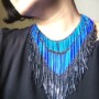 A Stunning, Elegant fringe necklace in a very complimentary V shape that is a conversation starter anywhere! The elegant colours add to the drama of this mesmerizing, beautiful necklace making it that special piece you just want! It also makes an awesome gift for a loved one.
