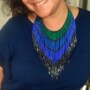 A Stunning, Elegant fringe necklace in a very complimentary V shape that is a conversation starter anywhere! The elegant colours add to the drama of this mesmerizing, beautiful necklace making it that special piece you just want! It also makes an awesome gift for a loved one.